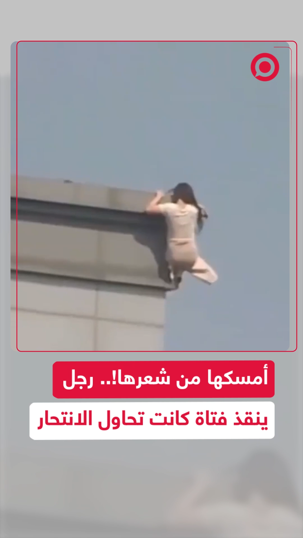 أمسكها من شعرها!.. مشاهد لرجل قام بإنقاذ فتاة في اللحظة الأخيرة حيث كانت تحاول الانتحار بالقفز من الطابق الـ20.