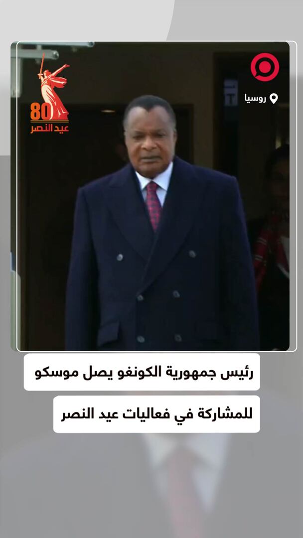 رئيس جمهورية الكونغو، دينيس ساسو نغيسو، يصل العاصمة الروسية موسكو للمشاركة في فعاليات عيد النصر.