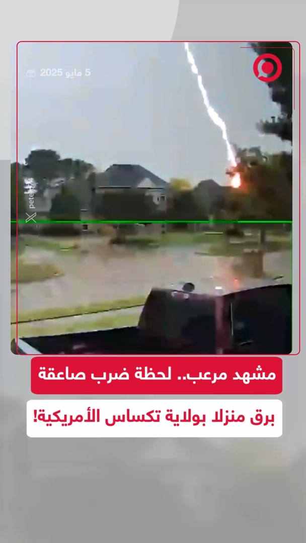 لحظة مرعبة ⚡.. صاعقة برق تضرب منزلا بشكل مباشر في ولاية تكساس الأمريكية، ما أسفر عن إصابة 3 أشخاص بجروح طفيفة.