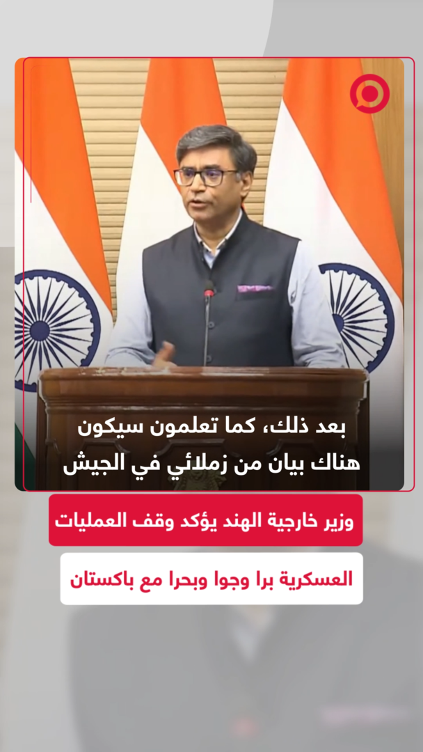 وزير خارجية الهند يؤكد وقف العمليات العسكرية برا وجوا وبحرا مع باكستان