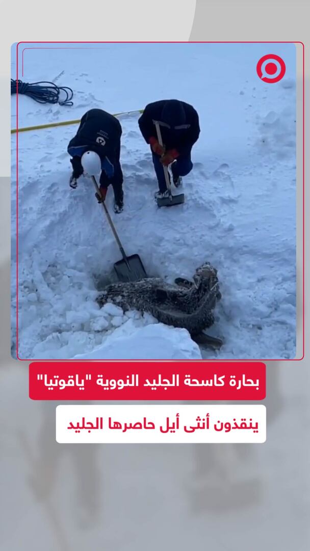 بحارة كاسحة الجليد النووية الروسية "ياقوتيا" ينقذون أنثى أيل بعد أن حاصرتها الكتل الجليدية في نهر ينسي، حيث استخدموا رافعة لمساعدتها على التحرر من الجليد.
