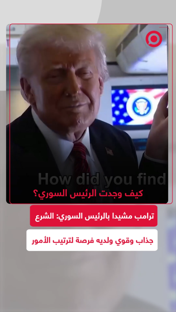 ترامب واصفا الشرع: جذاب وقوي ولديه فرصة لترتيب الأمور