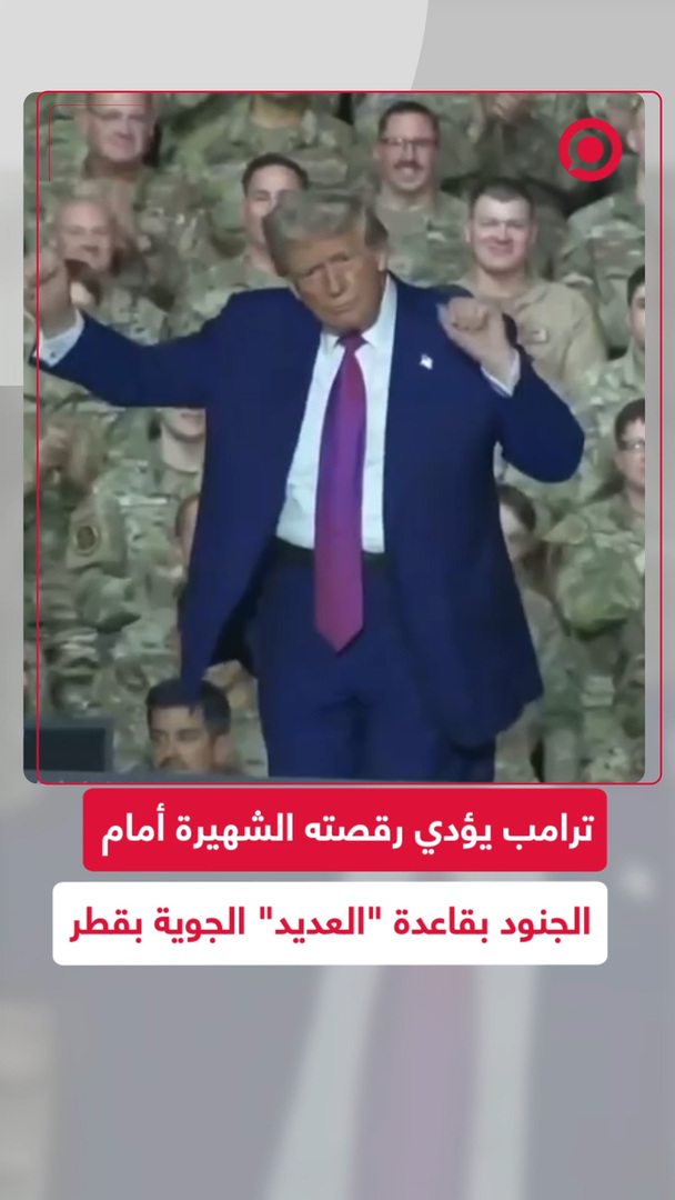 مقطع فيديو متداول للرئيس الأمريكي دونالد ترامب، وهو يؤدي رقصته الشهيرة أمام الجنود في قطر بقاعدة "العديد" الجوية.