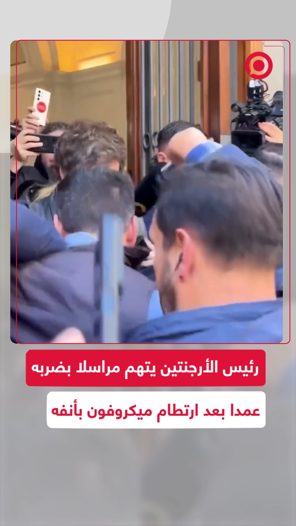 الرئيس الأرجنتيني خافيير ميلي يتهم مراسلا صحفيا بالاعتداء عليه، بعد أن ارتطم ميكروفون مراسل قناة معارضة أرجنتينية برئيس البلاد أثناء خروجه من مركز الاقتراع بعد التصويت في انتخابات برلمان بوينس آيرس.
