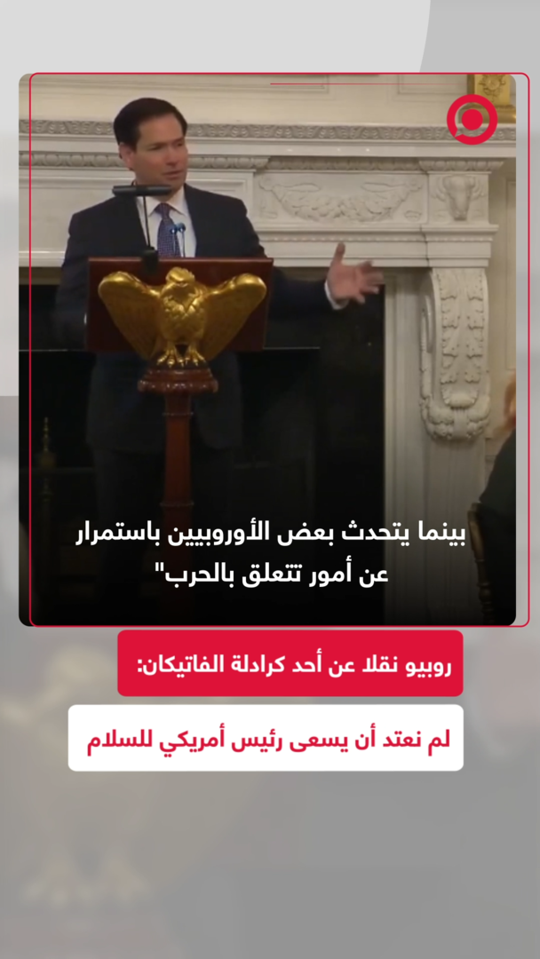 الولايات المتحدة تسعى لتحقيق السلام، بينما تبدو أوروبا أكثر انجذابا نحو النزاعات.. وزير الخارجية الأمريكي، ماركو روبيو، يعرب عن دهشته من موقف أوروبا الداعم للحروب، مستندا في تصريحاته إلى ما سمعه من أحد الكرادلة خلال زيارته للفاتيكان.