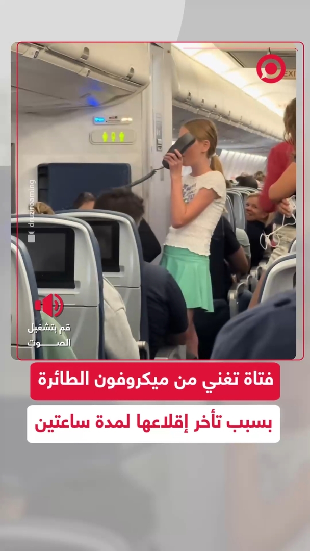 فتاة تغني من ميكروفون طائرة بعد تأخر إقلاع الرحلة لساعتين عن موعدها المحدد