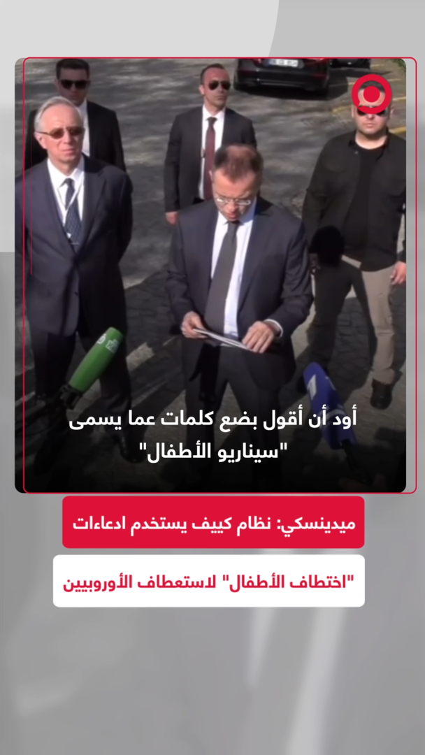"الجنود الروس أنقذوا أطفالا أوكرانيين والآن نبحث عن أسرهم وليس لدينا أي طفل أوكراني مختطف".. رئيس الوفد الروسي في مفاوضات إسطنبول، فلاديمير ميدينسكي، يؤكد أن نظام كييف يستخدم ادعاءات "اختطاف الأطفال" لاستعطاف الأوروبيين.