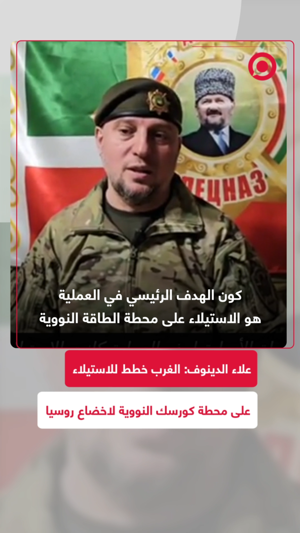 قائد قوات "أحمد" الروسية الخاصة، أبتي علاء الدينوف، يصرح بأن خطط الاستيلاء على محطة كورسك للطاقة النووية هدفها كان إجبار روسيا على التفاوض دون شروط.