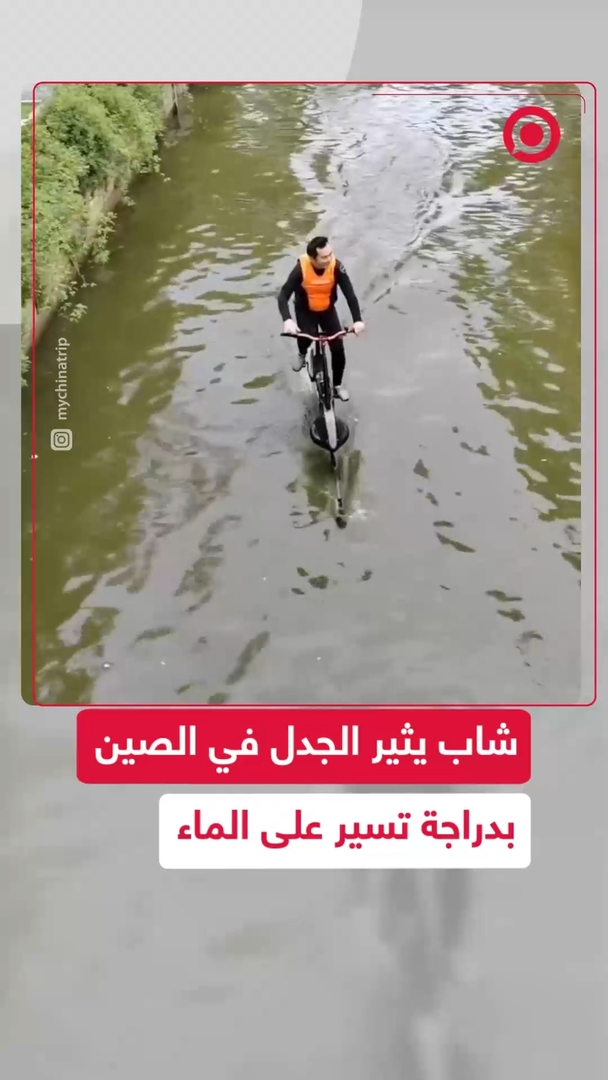 ابتكار غريب 🚴♂️🌊.. شاب صيني يثير الجدل بعد ظهوره يقود دراجة تسير على مياه أحد الأنهار. هل تود تجربة هذه الدراجة؟