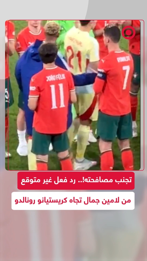 لقطة سريعة لكنها أثارت ضجة واسعة 🎥.. لامين جمال، نجم برشلونة ومنتخب إسبانيا، ظهر في مقطع فيديو متداول وهو يتجاهل كريستيانو رونالدو، أثناء الممر الشرفي عقب خسارة منتخب بلاده أمام البرتغال بركلات الترجيح في نهائي بطولة الأمم الأوروبية.