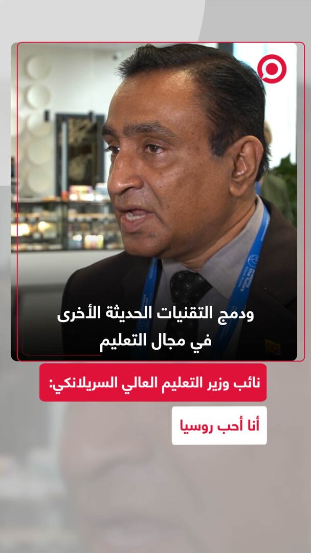"أنا أحب روسيا".. نائب وزير التعليم العالي في سريلانكا، يؤكد على اهتمام بلاده بتبادل الخبرات في مجال التعليم، وخصوصا فيما يتعلق باستخدام الذكاء الاصطناعي، خلال حضوره المنتدى الدولي الثالث "صياغة المستقبل" في مدينة قازان الروسية.