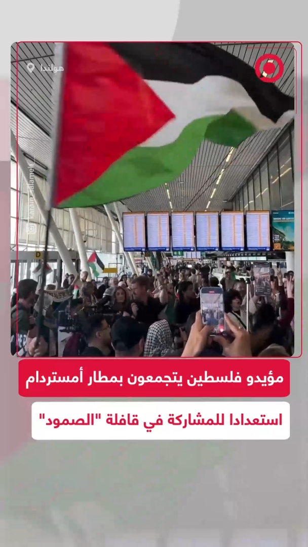 مشهد يفيض بالتضامن.. عشرات الداعمين لفلسطين يتجمعون في مطار أمستردام استعدادا للمشاركة في قافلة "الصمود" ضمن المسيرة العالمية الهادفة لكسر الحصار الإسرائيلي المفروض على غزة.