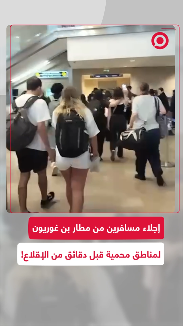 مشاهد لإجلاء أول دفعة من المسافرين الذين كان من المفترض أن يغادروا إسرائيل، إلى مناطق محمية بمطار بن غوريون قبل دقائق من الإقلاع!