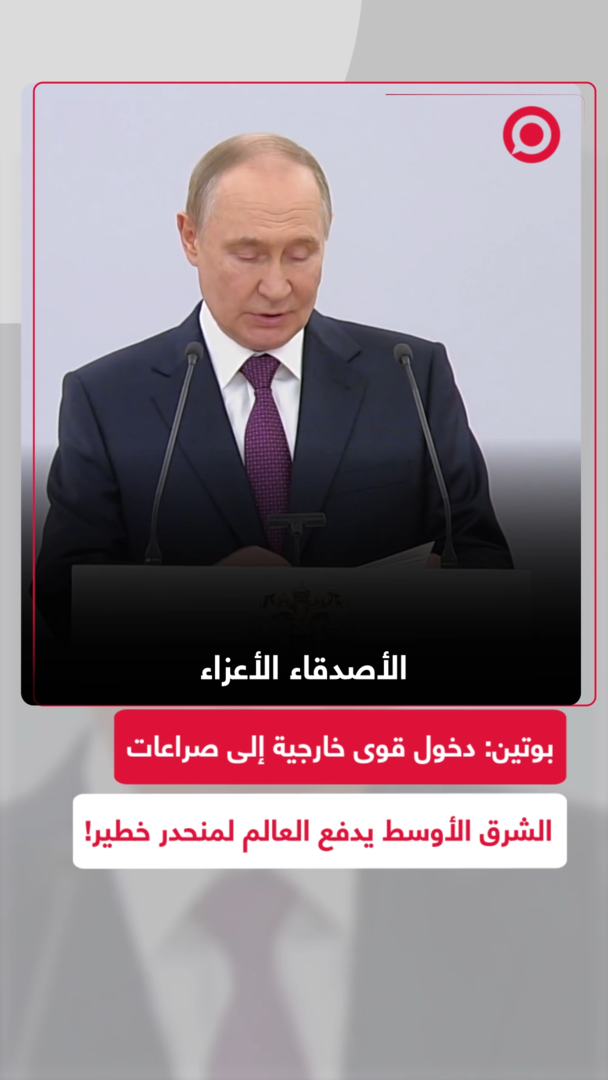 "الناتوا يواصل ترويج كذبة أن روسيا ستغزو أوربا ليجني الأموال من الشعوب الغربية".. الرئيس الروسي فلاديمير بوتين يحذر من أن الوضع العالمي يتجه نحو منحدر خطير، مشيرا إلى تصاعد الأزمة في الشرق الأوسط عقب تدخل قوى من خارجه في الصراعات الدائرة فيه، كما أشار إلى خطورة عسكرة دول حلف الناتو ودعوات قادته لتكبيد روسيا هزيمة استراتيجية.