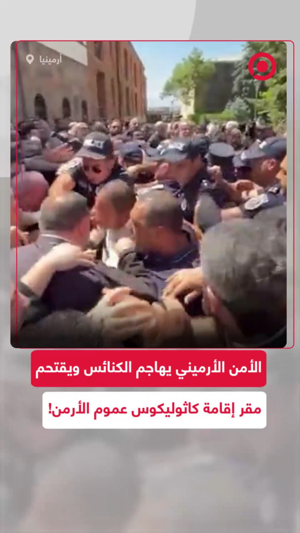 مشاهد لقيام قوات الأمن الأرمينية بمهاجمة الكنائس في البلاد، حيث اقتحموا مقر إقامة كاثوليكوس عموم الأرمن، واشتبكوا مع الكهنة مما دعا البطريرك الأعلى وكاثوليكوس عموم الأرمن غاريغين الثاني، يخرج بنفسه إلى تهدئة قوات الأمن التي استخدمت القوة المفرطة بحق رجال الدين.