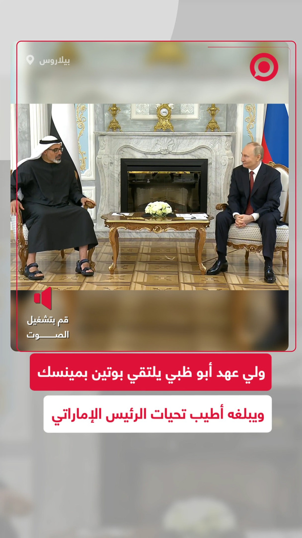 ولي عهد أبو ظبي الشيخ خالد بن محمد بن زايد آل نهيان يلتقي الرئيس الروسي فلاديمير بوتين، على هامش قمة الاتحاد الاقتصادي الأوراسي المنعقدة في العاصمة البيلاروسية، ويبلغه أطيب التحيات والتمنيات بالصحة الدائمة من الشيخ محمد بن زايد آل نهيان رئيس دولة الإمارات.