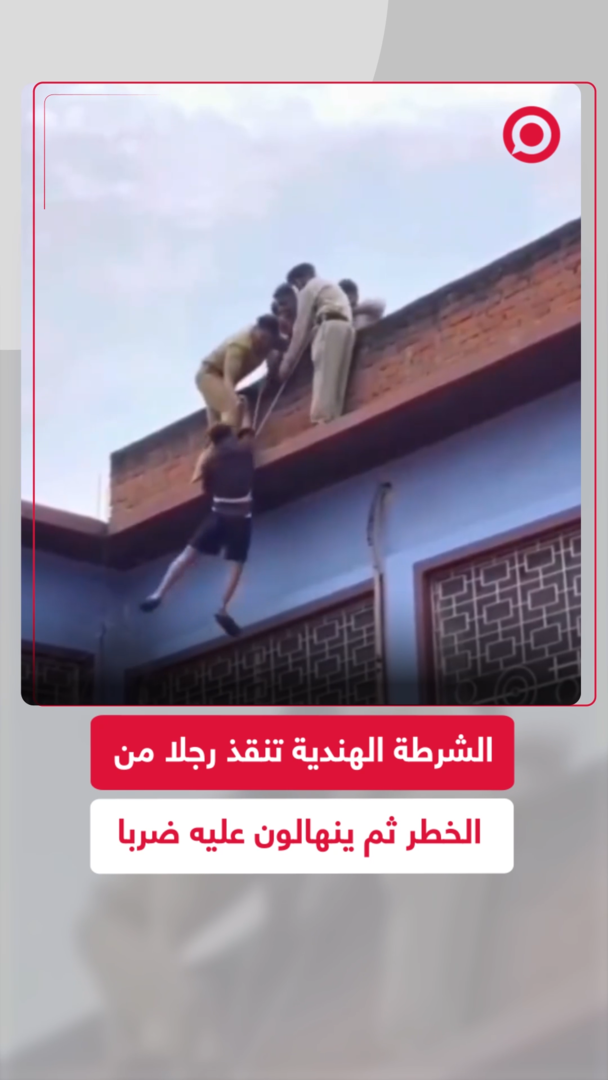 مقطع فيديو متداول يوثق لحظة إنقاذ رجل من قبل أفراد بالشرطة الهندية، قبل أن ينهالوا عليه ضربا بعد إتمام عملية الإنقاذ.