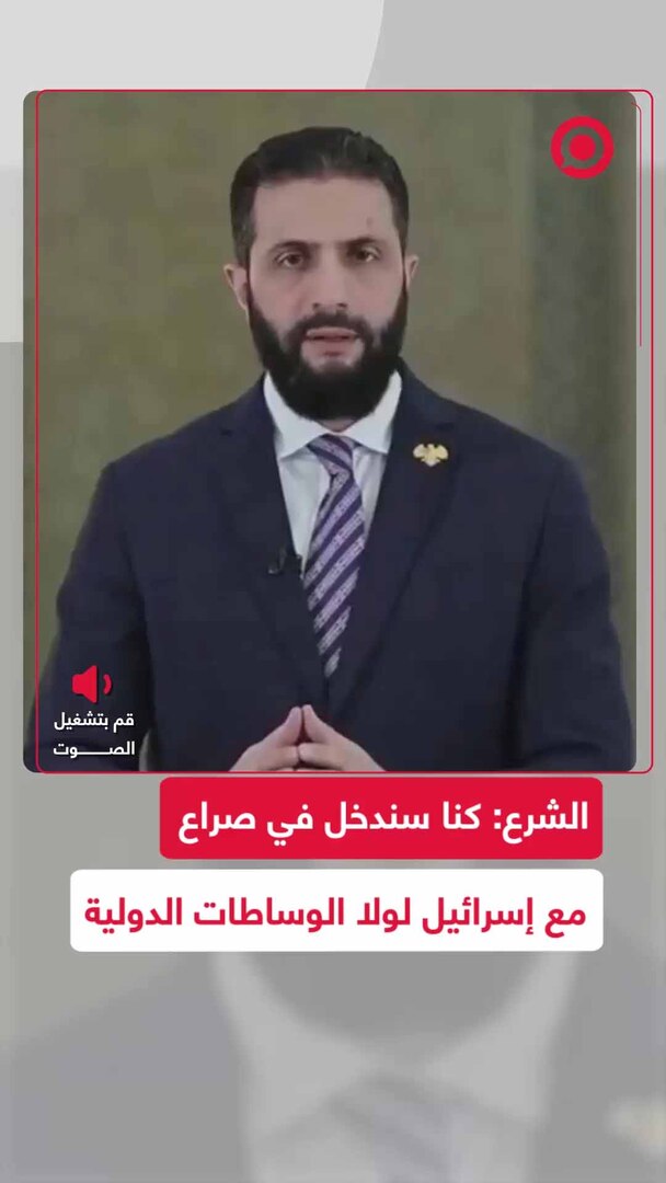 "لولا الوساطات الأمريكية والتركية والعربية لدخلنا في صراع مع إسرائيل".. الرئيس السوري أحمد الشرع في أول ظهور له بعد الأحداث الدامية التي شهدتها محافظة السويداء جنوب غرب سوريا يقول إن الوساطات الدولية حالت دون انزلاق سوريا لحرب مفتوحة مع إسرائيل