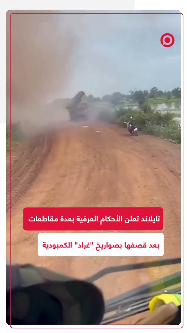 تايلاند تعلن الأحكام العرفية في 8 مقاطعات بعد قصفها بصواريخ "غراد" من قبل الجيش الكمبودي في ظل التصعيد الأخير بين الطرفين.