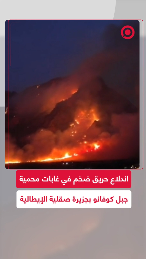مشاهد من اندلاع حريق غابات واسع النطاق، حيث انتشر على نحو سريع بسبب الرياح القوية في محمية جبل كوفانو الطبيعية بمقاطعة تراباني في جزيرة صقلية الإيطالية.