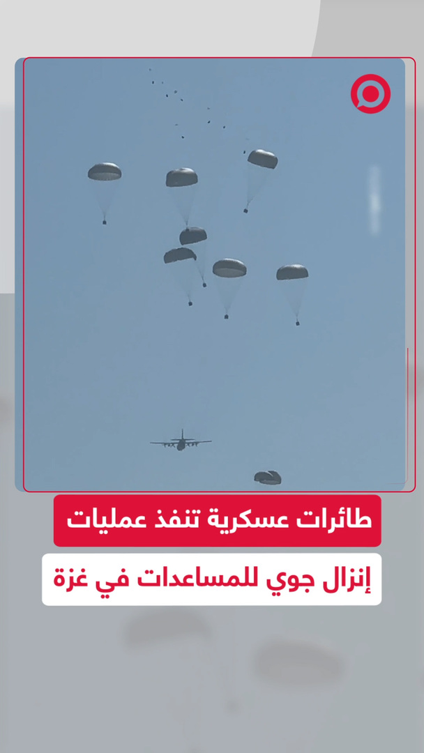 مشاهد لطائرات عسكرية تنفذ عمليات إنزال جوي للمساعدات الإنسانية جنوب قطاع غزة.