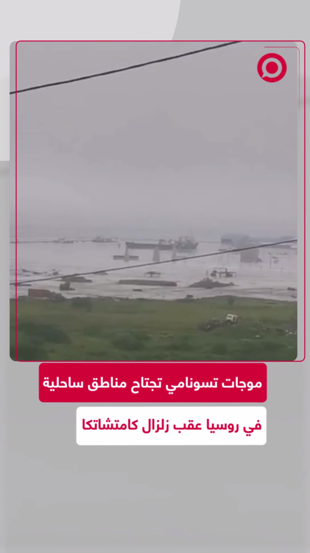 مقطع متداول يظهر موجات تسونامي اجتاحت المنطقة الساحلية في مدينة سيفيرو كوريليسك، عقب الزلزال العنيف الذي ضرب قبالة مقاطعة كامتشاتكا الروسية.