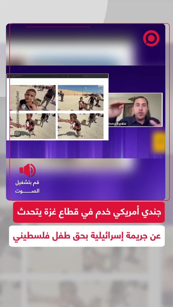 "جمع الفتات من الأرض وقبلني ثم قتلوه".. جندي أمريكي خدم في قطاع غزة يروي جريمة مروعة ارتكبها الجيش الإسرائيلي بحق طفل فلسطيني حاول الحصول على الطعام من إحدى نقاط توزيع المساعدات داخل القطاع.