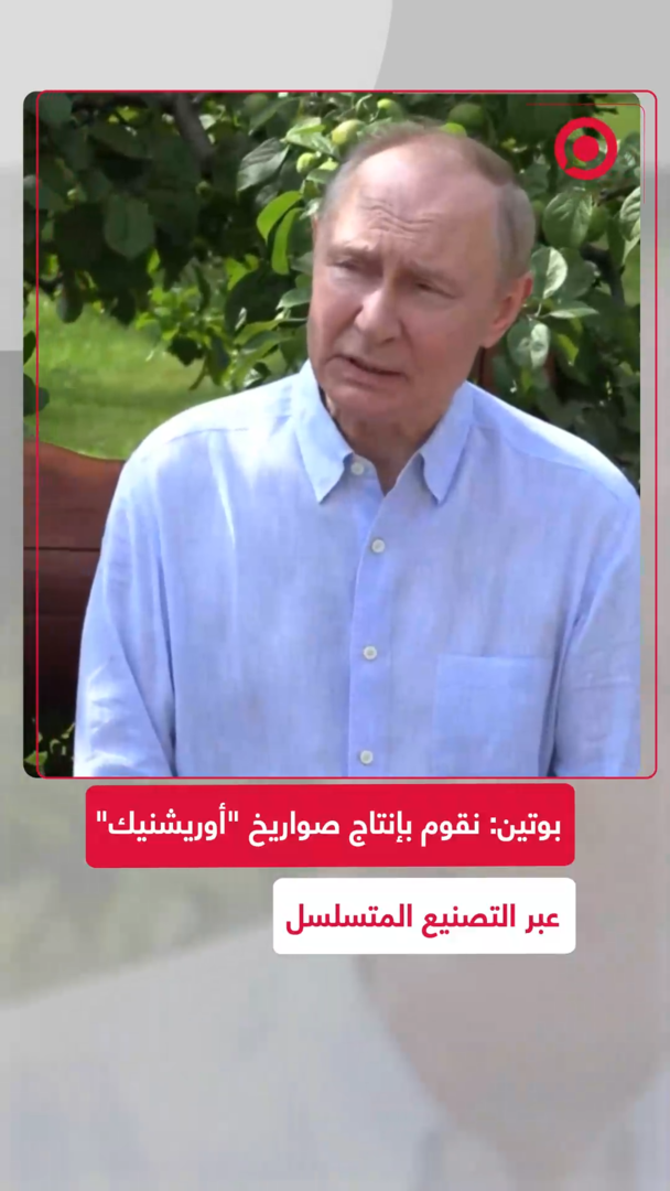 الرئيس الروسي فلاديمير بوتين يعلن عن بدء إنتاج الصواريخ من طراز "أوريشنيك" عبر عملية التصنيع المتسلسل وتسليمها للقوات الروسية.