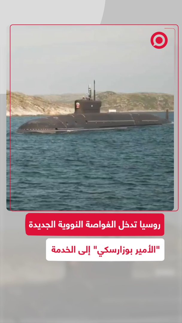 الغواصة النووية الاستراتيجية الروسية "الأمير بوزارسكي" دخلت الخدمة القتالية بعد وصولها إلى قاعدة غواصات الأسطول الشمالي في غادجييفو، الواقعة في مقاطعة مورمانسك شمال غرب روسيا.