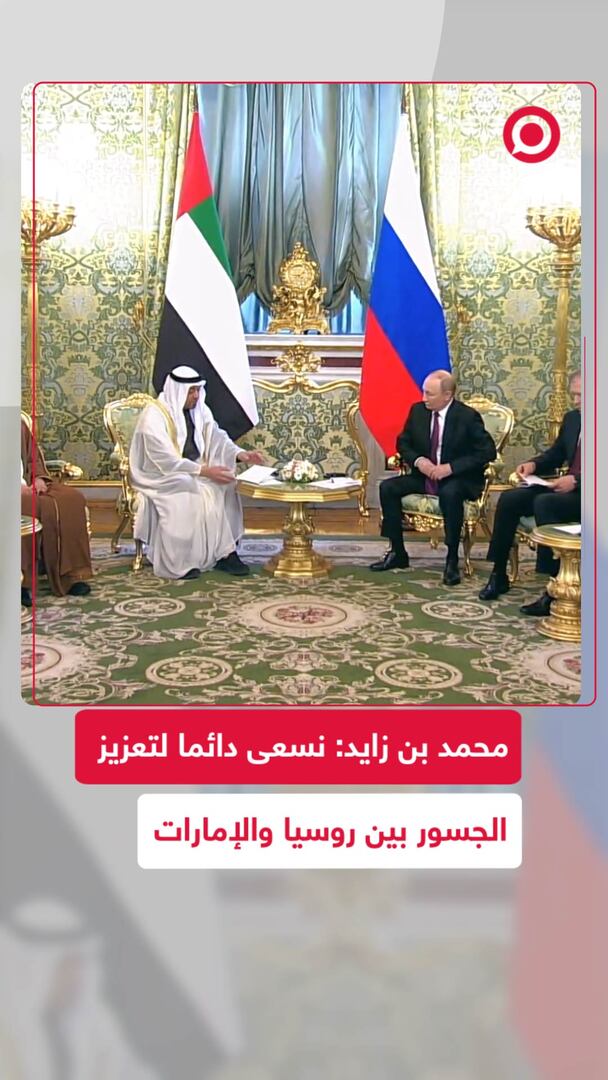 "نسعى دائما إلى تعزيز الجسور بين الإمارات وروسيا".. رئيس دولة الإمارات العربية المتحدة، الشيخ محمد بن زايد آل نهيان، خلال لقائه الرئيس الروسي فلاديمير بوتين في الكرملين، يؤكد أن حجم التبادل التجاري بين الإمارات وروسيا يبلغ 11.5 مليار دولار سنويا.