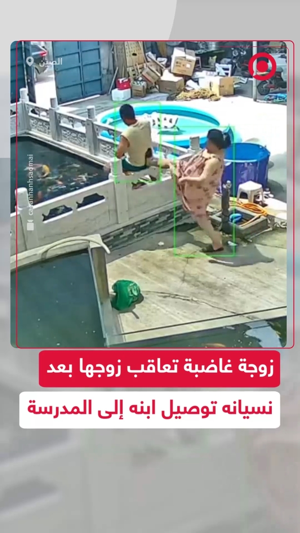 زوجة غاضبة تدفع زوجها لبركة أسماك بسبب نسيانه توصيل ابنه إلى المدرسة