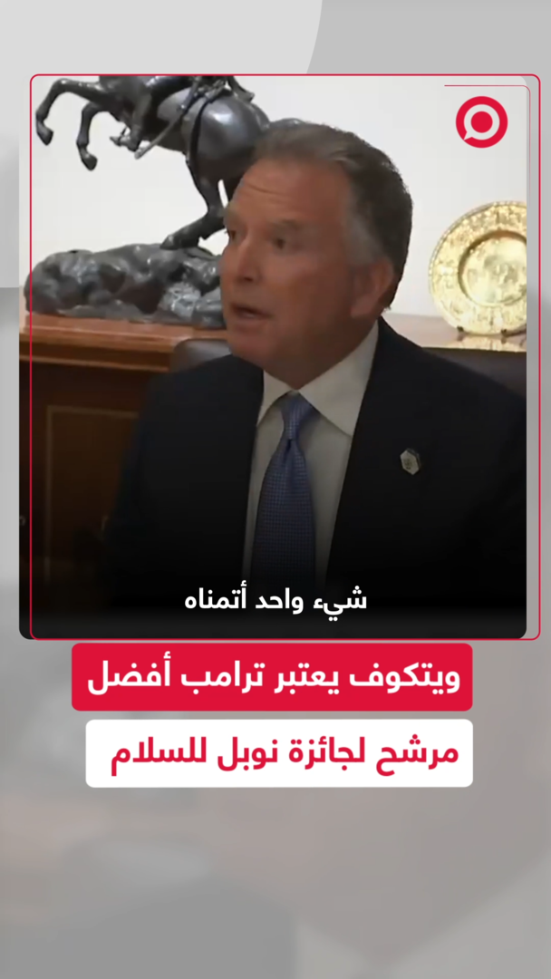 المبعوث الأمريكي الخاص، ستيف ويتكوف، يرى أن الرئيس الأمريكي دونالد ترامب يعتبر أبرز مشرح لجائزة نوبل للسلام.