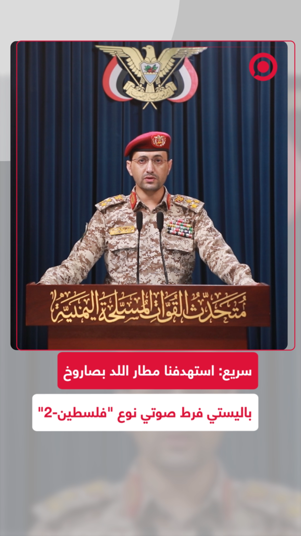 مستخدمين صاروخا باليستيا فرط صوتي من طراز "فلسطين-2".. المتحدث باسم جماعة "أنصار الله" اليمنية يعلن "استهداف مطار اللد في يافا".