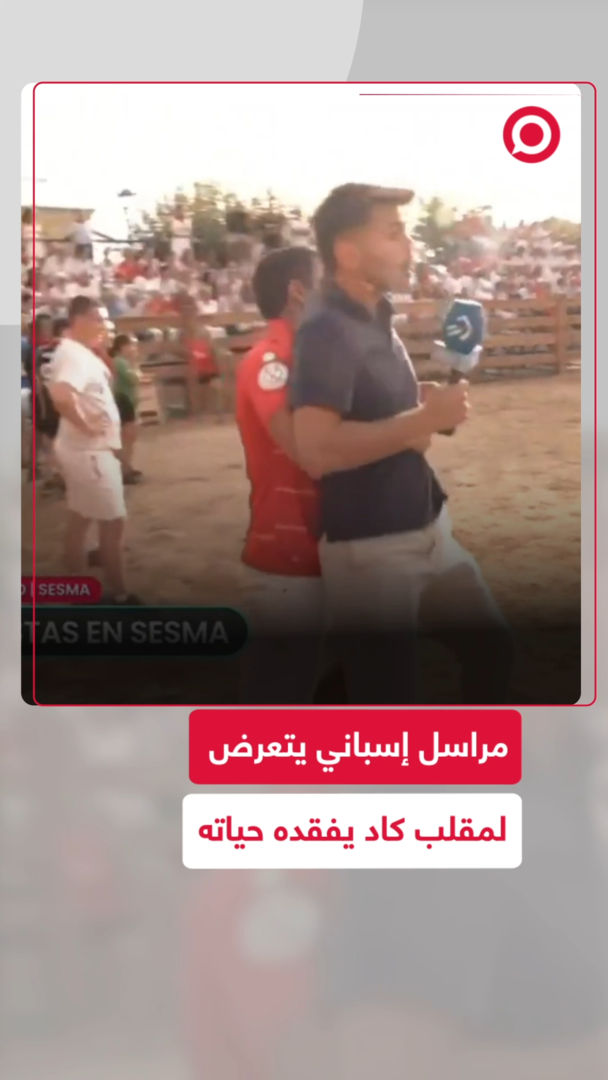 سلم منه بأعجوبة.. مراسل إسباني يتعرض لمقلب خطير جدا حيث قام أحد المشاهدين لعروض الثيران المحلية بحمله إلى وسط الحلبة رغما عنه ووضعه أمام الثور الصغير الذي انقض عليه وأسقطه أرضا مرتين.