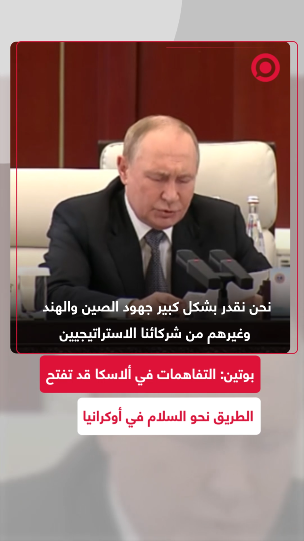الرئيس الروسي فلاديمير بوتين، خلال قمة شنغهاي يؤكد أن التفاهمات التي جرى التوصل إليها في ألاسكا مع الرئيس الأمريكي دونالد ترامب قد تفتح الطريق نحو تسوية سلمية للأزمة الأوكرانية.