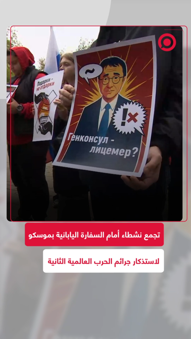 لاستذكار جرائم الحرب المروعة التي ارتُكبت في الأراضي التي احتلتها اليابان.. أكثر من 50 ناشطا يشاركون في تجمع حاشد أمام السفارة اليابانية في موسكو، إحياء للذكرى الثمانين لنهاية الحرب العالمية الثانية، حيث أنهم أكدوا أن محاولة إعادة كتابة التاريخ لن تدمر ذاكرة الشعوب.