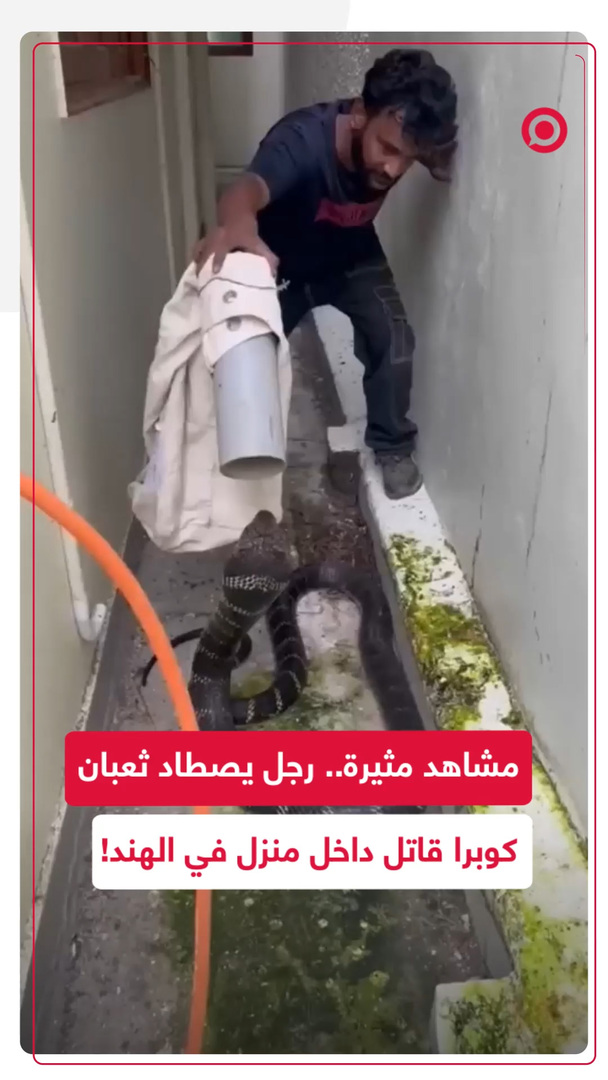 مشاهد لمغامرة مثيرة في الهند، حيث نجح رجل في اصطياد أفعى كوبرا قاتلة داخل أحد المنازل. #كوبرا_قاتلة #الهند #مغامرات_خطيرة #فيديو