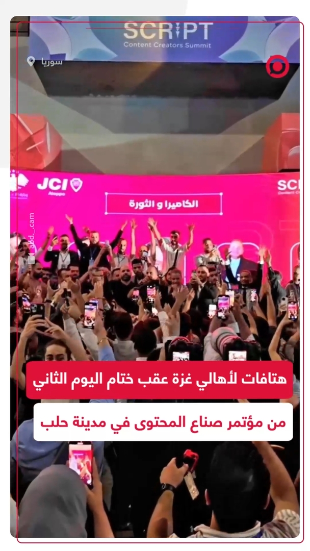 هتافات داعمة لأهالي غزة عقب مؤتمر صناع المحتوى في مدينة حلب السورية