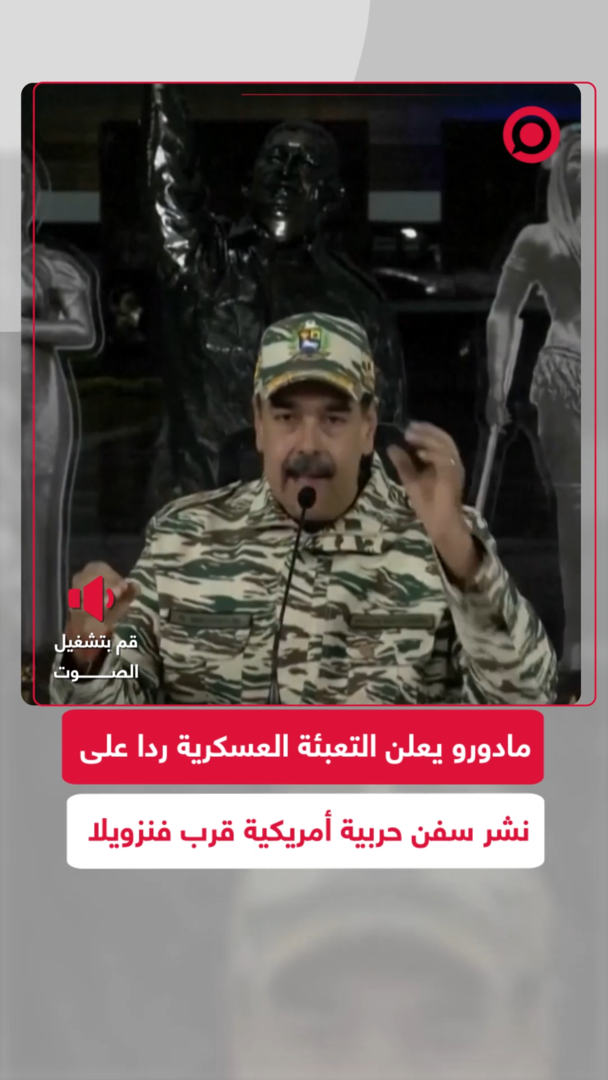 الرئيس الفنزويلي نيكولاس مادورو، يعلن التعبئة لوحدات الدفاع البوليفارية ردا على نشر الولايات المتحدة سفنا حربية قرب سواحل البلاد، واصفا ذلك بـ"الاستفزاز العسكري". #نيكولاس #فنزويلا #جيش
