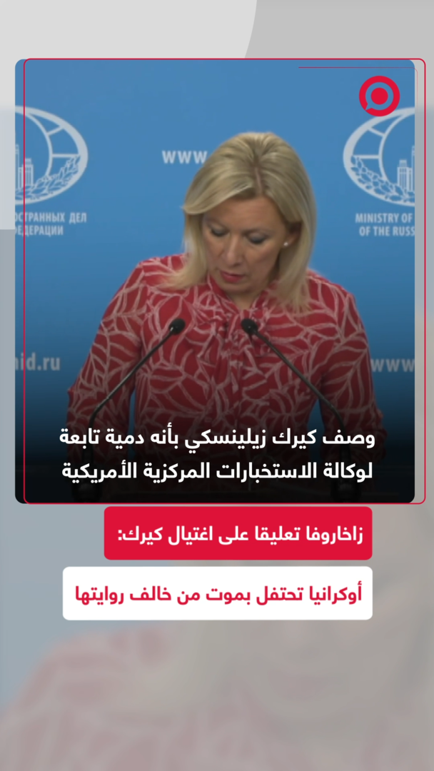 المتحدثة باسم الخارجية الروسية، ماريا زاخاروفا، صرحت بأن الناشط الأمريكي تشارلي كيرك الذي اغتيل مؤخرا وصف زيلينسكي بأنه دمية للاستخبارات الأمريكية، ورفض تزويد أوكرانيا بالسلاح معتبرا القرم جزءا من روسيا. وأضافت أن احتفال صفحات أوكرانية بوفاته يثبت أن الغرب برعايته لنظام كييف قد صنع وحشا دمويا.