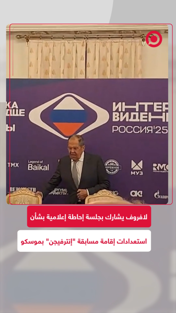 بديل مسابقة الأغنية الأوروبية "يوروفيجن".. وزير الخارجية الروسي سيرغي لافروف، يعقد جلسة إحاطة إعلامية بشأن الاستعدادات لإقامة مسابقة الأغنية الدولية "إنترفيجن" بموسكو، في 20 سبتمبر الجاري، بمشاركة فنانين من 23 دولة، بما في ذلك دول من مجموعة "بريكس"، ورابطة الدول المستقلة، وأمريكا اللاتينية، وآسيا، وإفريقيا. #روسيا #موسكو #لافروف #جلسة #مسابقة #أغنية #فيديو