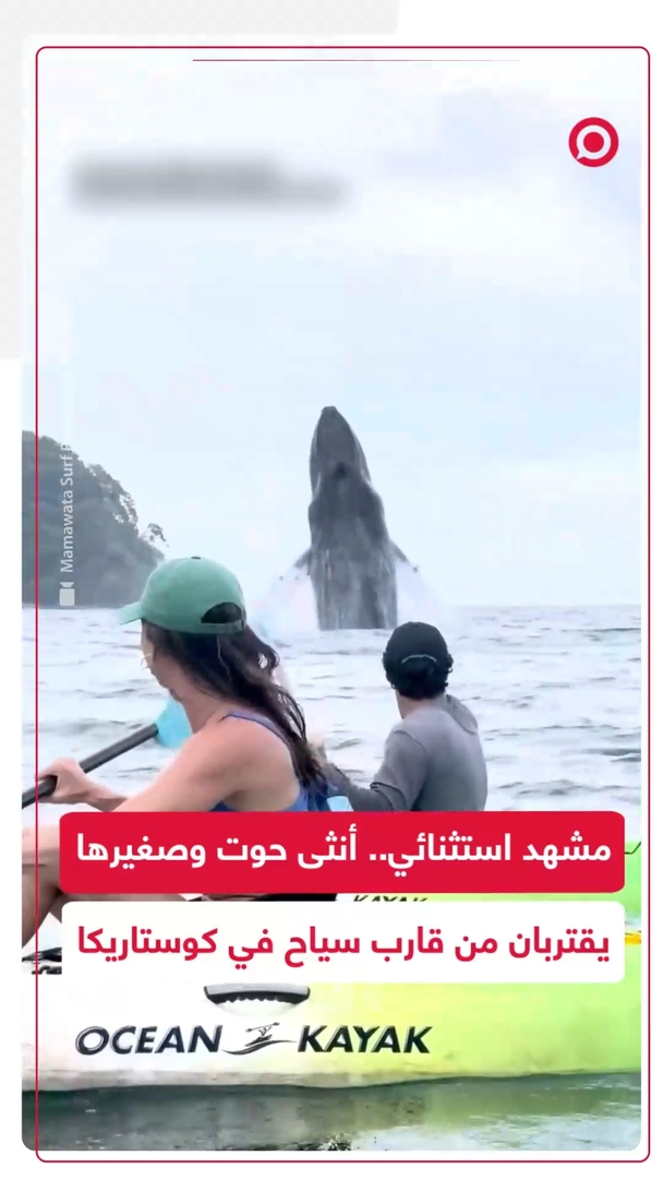 مشهد مرعب في كوستاريكا.. أنثى حوت وصغيرها يقتربان من قارب كياك