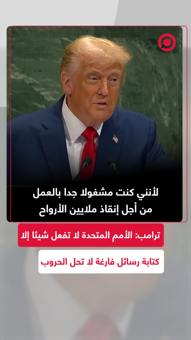 ترامب: الأمم المتحدة لا تفعل شيئا إلا كتابة رسائل فارغة لا تحل الحروب