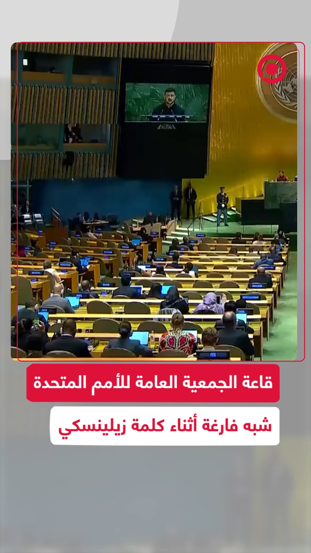 زيلينسكي يتحدث لقاعة شبه فارغة خلال كلمته في الجمعية العامة للأمم المتحدة