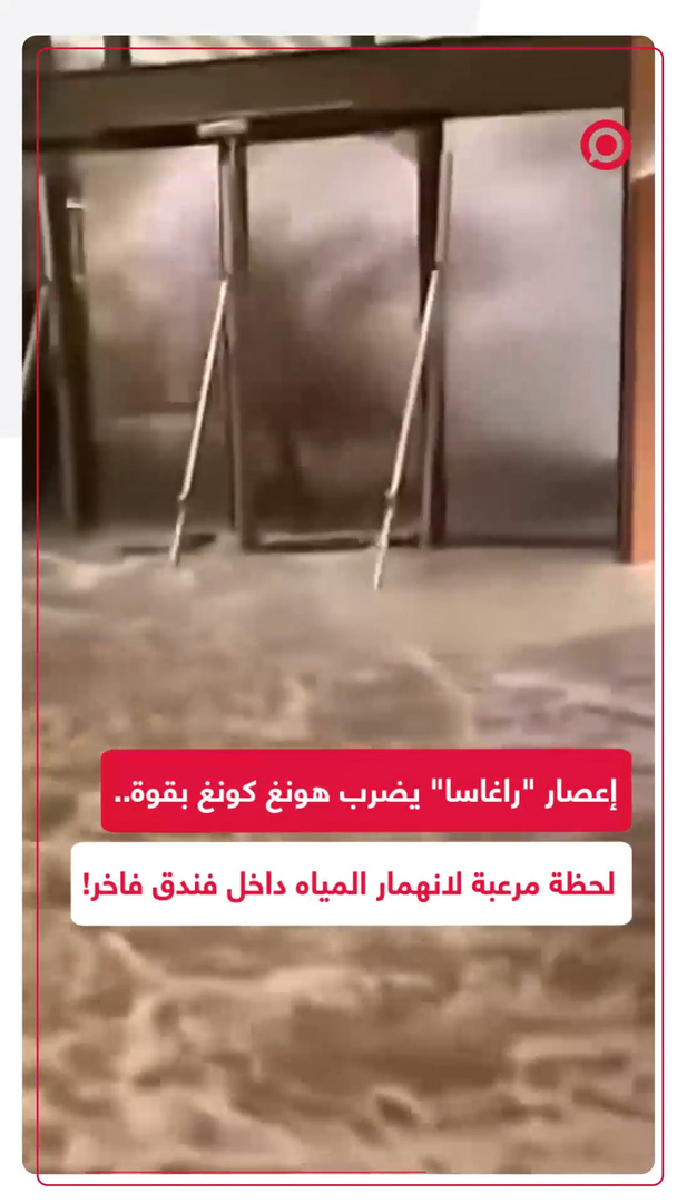 لقطات مروعة من هونغ كونغ تظهر لحظة اندفاع مفاجئ للمياه وتحطم الأبواب الزجاجية لفندق أثناء مرور الإعصار "راغاسا" عبر المنطقة، ما أدى إلى إلقاء أحد الأشخاص أرضا دون تسجيل إصابات #إعصار #هونغ_كونغ #فيديو #ترند #اكسبلور