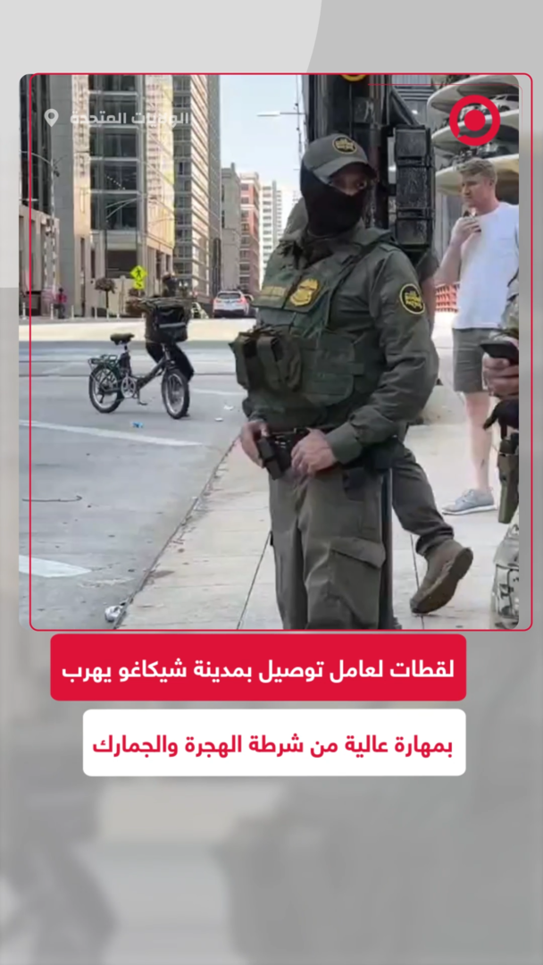 بسرعة ومهارة عالية.. مشاهد لتمكن عامل توصيل من الهروب من مجموعة من عناصر شرطة الهجرة والجمارك بمدينة شيكاغو الأمريكية. #شيكاغو#جمارك #عناصر #عامل #هروب #فيديو