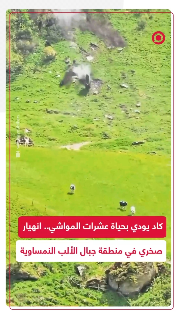 وقوع انهيار صخري مفاجئ في منطقة توكس بجبال الألب في النمسا، حيث تدفّقت كتل هائلة من الصخور نحو مرعى للمواشي. الحادث كاد أن يودي بحياة عشرات الأبقار والأغنام، لكن الألطاف الإلهية في اللحظات الأخيرة حالت دون وقوع كارثة. #مواشي #انهيار #جبال #ريل #فيديو #viral #اكسبلور