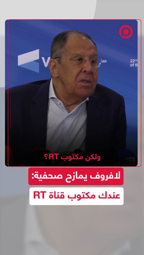 وزير الخارجية الروسي سيرغي لافروف، يمازح صحفية: عندك مكتوب قناة RT