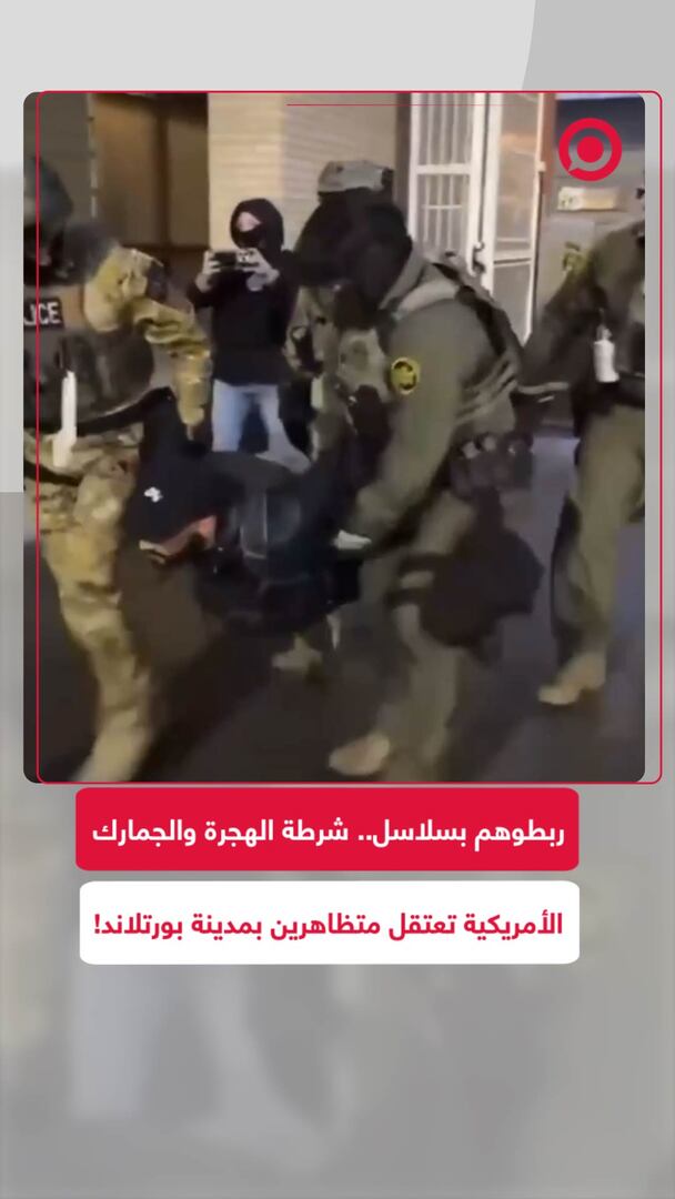ربطوهم بسلاسل.. اشتباكات جديدة بين متظاهرين وعناصر الهجرة والجمارك في مدينة بورتلاند الأمريكية #بورتلاند #واشنطن #أمريكا #ترامب
