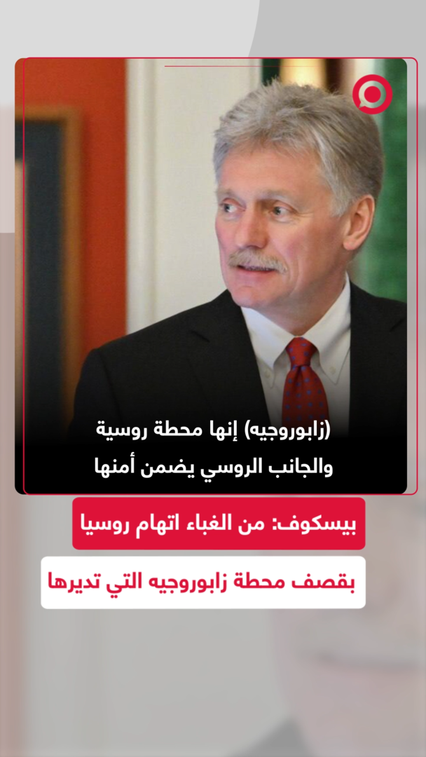 المتحدث باسم الكرملين دميتري بيسكوف، ينفي الشائعات حول قصف روسي استهدف محطة زابوروجيه للطاقة النووية، مؤكدا أنه من الغباء أن تتهم روسيا بقصف المحطة التي تسيطر عليها وتديرها، مضيفا أن الخبراء الروس يفعلون كل ما في وسعهم لضمان أمن المحطة.